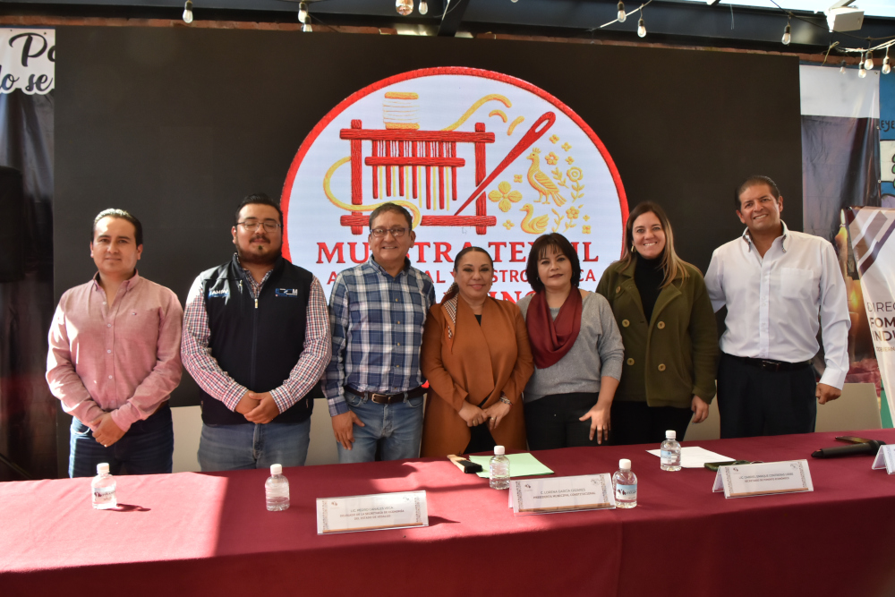 En rueda de prensa, autoridades municipales encabezadas por la presidenta Lorena García Cázares, así como el delegado estatal de la secretaria de Economía a nivel Federal Pedro Canales Vega, además del secretario de Fomento Económico Gabriel Enrique Contreras Uribe, se ofrecieron los pormenores de la Muestra Textil, Artesanal y Gastronómica Tulancingo 2025, que tendrá verificativo del 14 al 16 de noviembre en el jardín La Floresta, en coincidencia al buen fin.