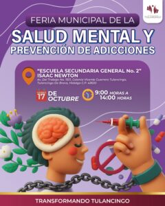 En puerta en Tulancingo, feria municipal de la salud mental y de la prevención de adicciones octubre 13, 2025
